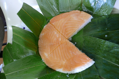 這是鳟魚嗎? 我以為是河鮭說。 肉身也是橘色的有白條紋, 像是拿來作燻鮭魚的那種魚。 |